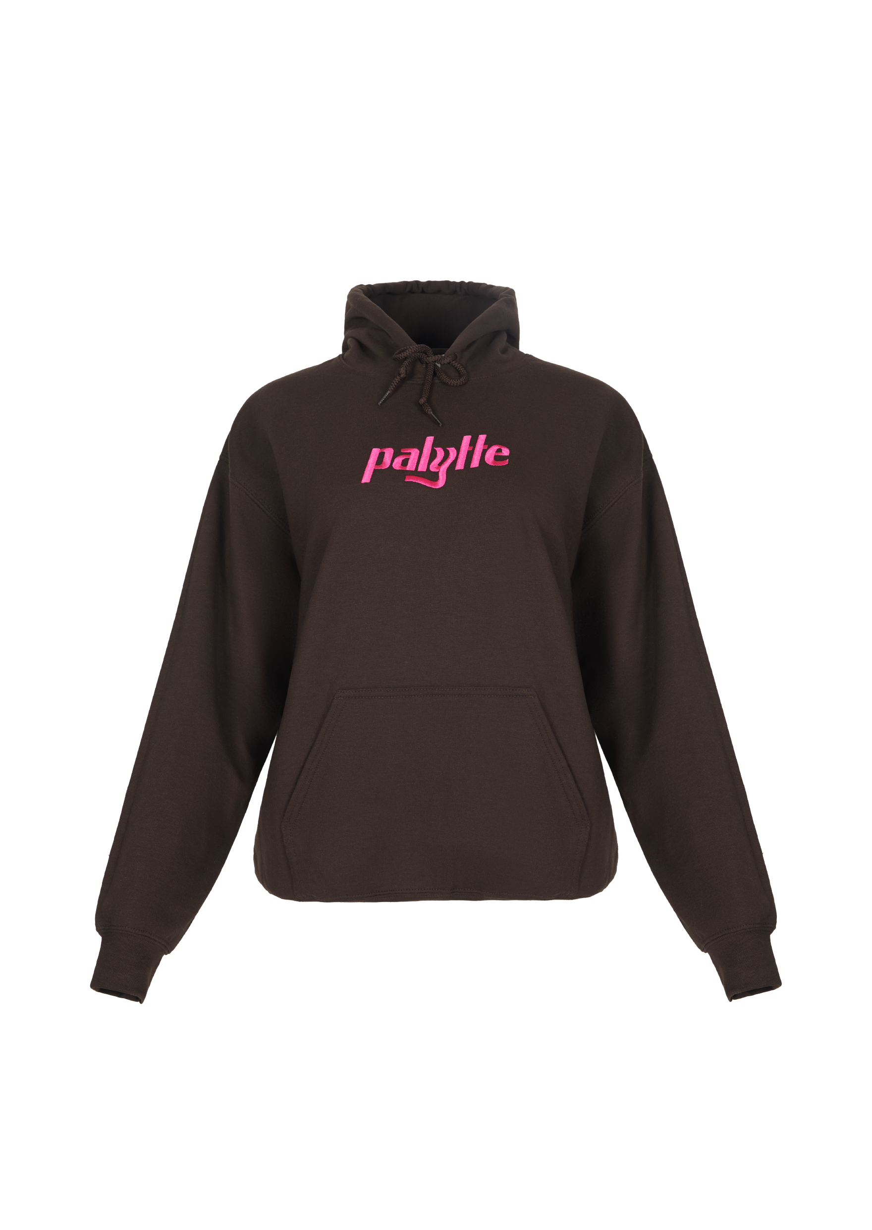 • Brown Hoodie with hot pink embroidered logo